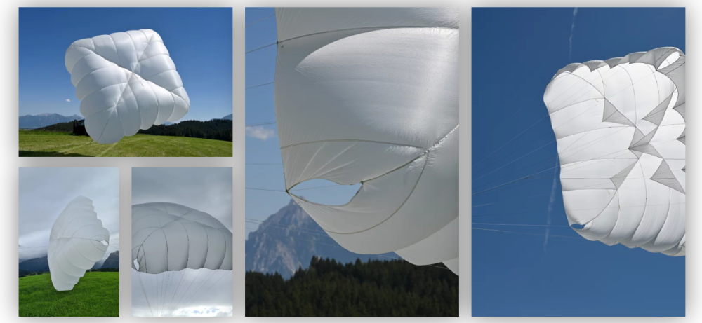 Hervorragende Sinkraten, jeweils nur knapp über 5 m/s, entspricht einem Sprung aus etwa 1,3 m Höhe