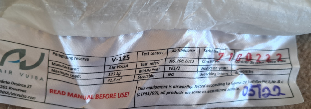 Da ich auf eine steuerbare Rettung umsteige verkaufe ich meinen V-125 Leichtretter (1,66kg Herstellerangabe) von AIR Vuisa. Die Rettung wurde regelmäßig von mir gepackt (Selbstpacker) und muss daher vom neuen Benutzer auch neu gepackt werden (oder packen lassen). Es gab nie eine Auslösung oder Wasserkontakt oder sonstige Sauereien. Die Rettung lässt sich super einfach und sehr kompakt packen.