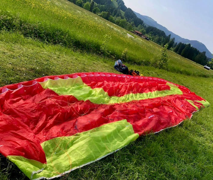 Wegen Umstieg auf einen B-Schirm verkaufe ich meinen Schulungsschirm Skywalk Mescal 6 M 85-110kg. Erstflug im Oktober 2022. Sehr guter Zustand. Frischer Check (auf meine Kosten) wird bei Interesse gemacht.Telefon: +49 176 42274353