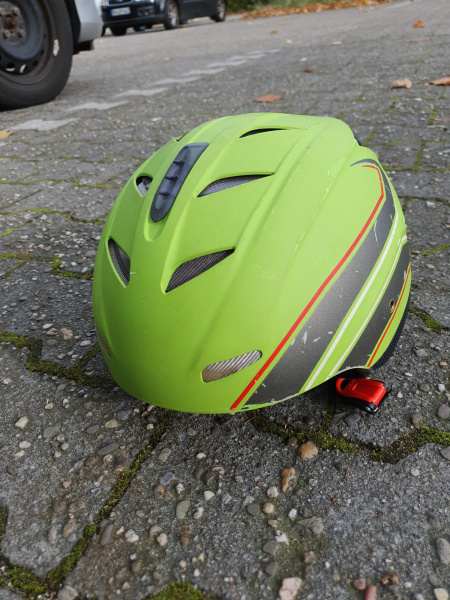 Grüner Helm, den ich 2016 mit folgender Beschreibung gebraucht gekauft habe: