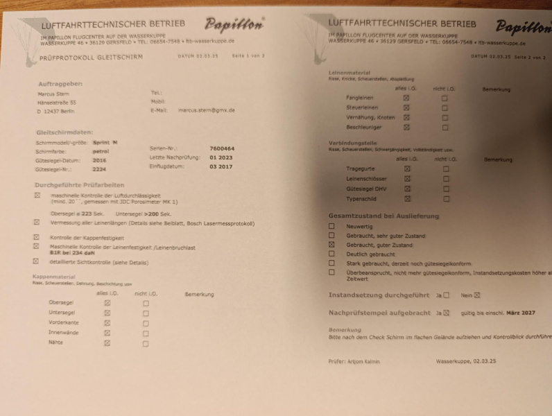 Bitte denkt daran! Luftsportgeräte müssen beim Betrieb in Deutschland mustergeprüft und stückgeprüft sei. Die Stückprüfung muss durch eine Kennzeichnung auf dem Gerät ersichtlich sein. Genaue Angaben zu dieser Kennzeichnung findet Ihr hier. |