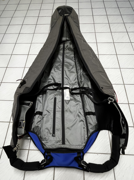 Das Gurtzeug überzeugt durch die sehr gut laufenden Reißverschlüsse und durch viele und große Staufächer. Der Container für das Rettungsgerät befindet sich auf der rechten Seite.