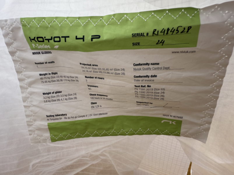 ich verkaufe meinen Niviuk Koyot 4 P (Größe 24, Farbe Thunder) inkl. Original-Packsack.