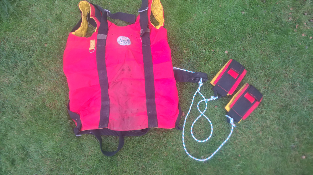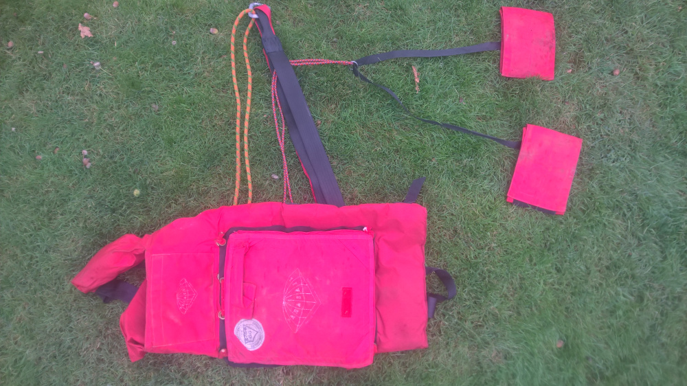 ·mit eingebautem (altem) Rettungsschirm im Brustcontainer
