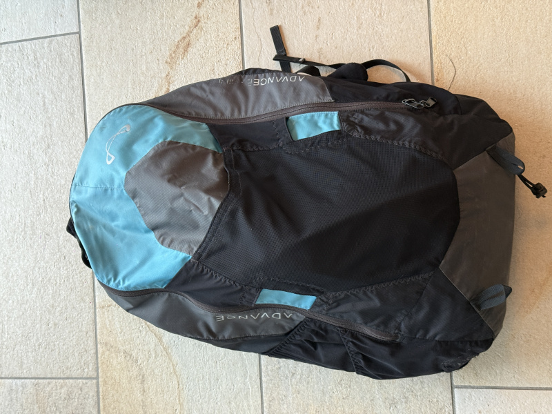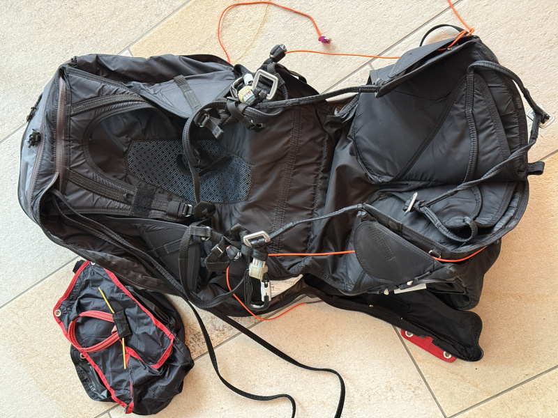 Gebrauchtes Gurtzeug mit defektem Hauptreißverschluss.Telefon: 0171 8100750