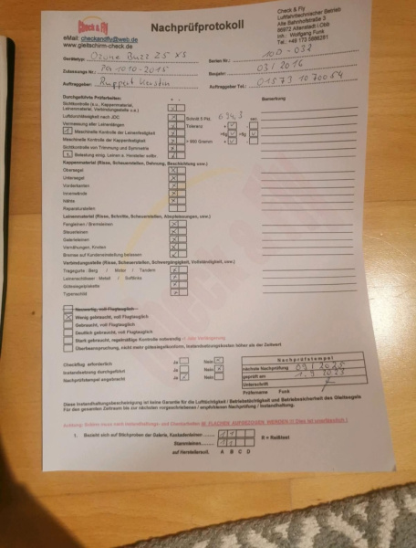 Bitte denkt daran! Luftsportgeräte müssen beim Betrieb in Deutschland mustergeprüft und stückgeprüft sei. Die Stückprüfung muss durch eine Kennzeichnung auf dem Gerät ersichtlich sein. Genaue Angaben zu dieser Kennzeichnung findet Ihr hier. |