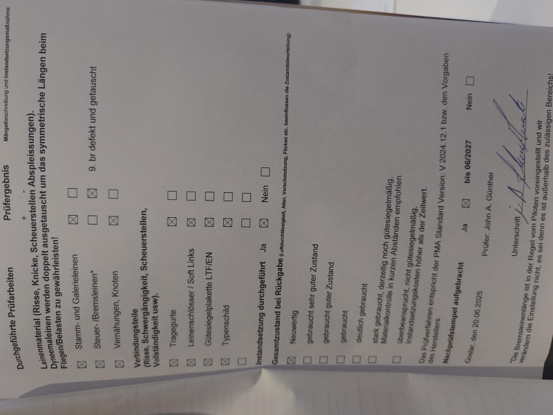 Bitte denkt daran! Luftsportgeräte müssen beim Betrieb in Deutschland mustergeprüft und stückgeprüft sei. Die Stückprüfung muss durch eine Kennzeichnung auf dem Gerät ersichtlich sein. Genaue Angaben zu dieser Kennzeichnung findet Ihr hier. |