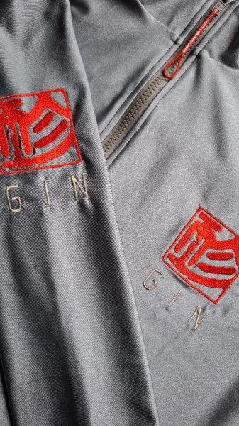 Farbe: Metallic, mit GIN Logo auf Vorderteil und beiden Ärmeln!