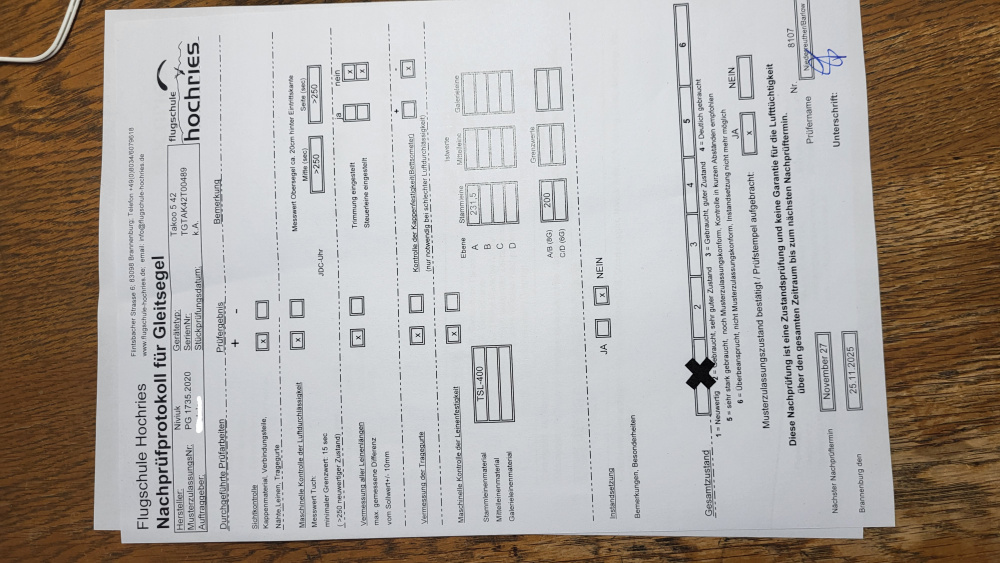 Bitte denkt daran! Luftsportgeräte müssen beim Betrieb in Deutschland mustergeprüft und stückgeprüft sei. Die Stückprüfung muss durch eine Kennzeichnung auf dem Gerät ersichtlich sein. Genaue Angaben zu dieser Kennzeichnung findet Ihr hier. |