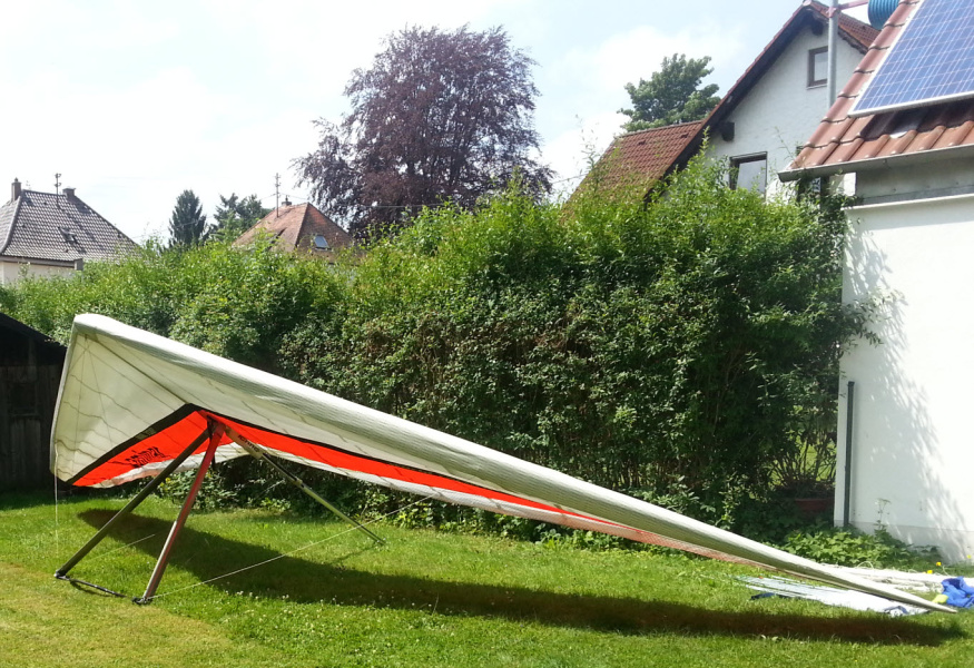 Der Drachen hat seit dem letzten Gütesiegel im Jahr 2014 genau 1 Flug absolviert. Seitdem hängt er sicher und trocken gelagert in der Garage. Tadellos in Schuß. Das Gleitschirmfliegen hat mich seither eingefangen.Telefon: +491727010795