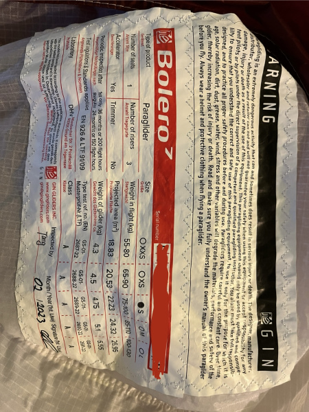 Ich biete meinen Gin Bolero 7 in der Größe S (75 - 100kg) an. Ich habe diesen für meine Höhenflugausbildung genutzt und steige jetzt auf einen anderen Schirm um. Der Schirm ist in 1A Zustand und wurde immer gut gepflegt und gelagert. Keine kein SIV, Sand, Wasser. Erstflug war im Februar 2023, inzwischen ca. 35 Flugstunden.