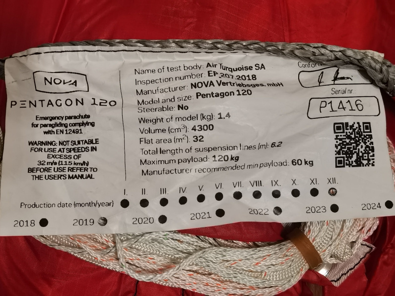 Zu verkaufen ist eine Rettung NOVA Pentagon 120 von 12/2019, sie kann also noch vier Jahre verwendet werden.Telefon: +491745882088