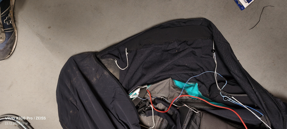 Alles ist voll in Ordnung. Lediglich die Führung einer Leine der Fußplatte war an der Naht abgerissen. (siehe Fotos) Dies wurde von mir genäht ohne den Beinsack anzutasten. Das ist die einzige Beschädigung die das Gurtzeug aufweist. Die Funktion des Gurtzeuges wird dadurch nicht beeinträchtigt.
