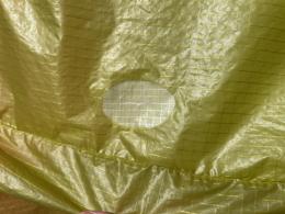Der Schirm hat zwei sehr kleine Löcher, die aber kaum zu sehen sind (siehe Fotos).