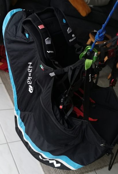 Gutzeug Woody Valley Haska 2 Größe M, Rettergriff links mit Rücken- und Seitenschutz inkl. Beschleuniger und Rückholer. Nur 40 Flugstunden genutzt, sehr guter Zustand.