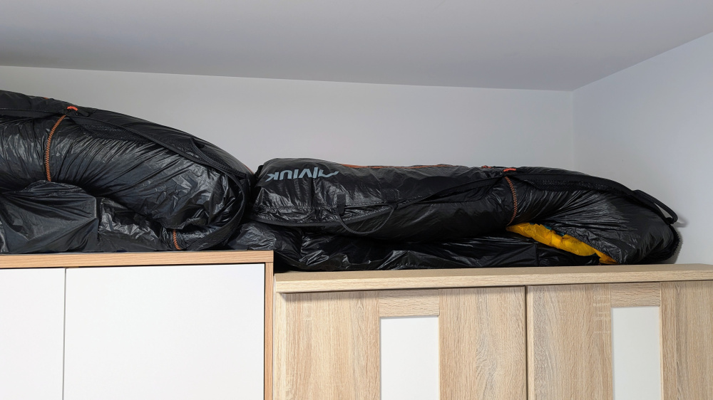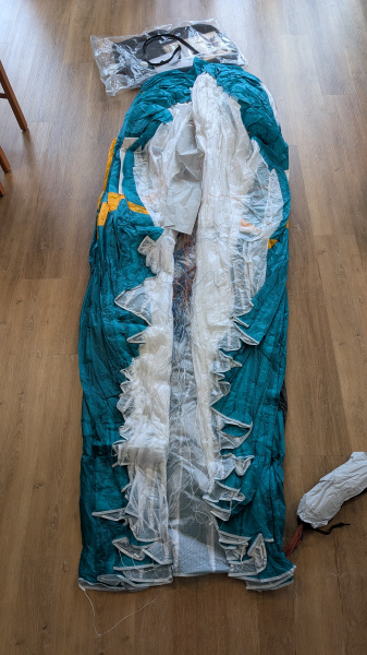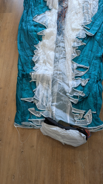 Der Schirm ist neu und unbenutzt: kein einziger Flug, kein Auslegen draußen. Nur im Wohnzimmer am 13.10.2025 ausgepackt und kontrolliert. Danach in ein separat erhältliches Zellenpacksack ZipNkare P gepackt und auf dem Schrank trocken und Lichtgeschütz gelagert.