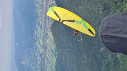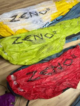 3) Zeno 2 ML, 6/22, etwa 300 Stunden, war mein Hauptschirm, nur lange XC-Flüge. Sieht eher aus wie 100 Stunden... Top Zustand. Der letzte check war letztes Jahr, hatte noch 500 JDC. Ich bin den Großteil der letzten Saison mit einem anderen Zeno 2 in L (dem grünen, aber der ist schon verkauft) geflogen. Kein Sand, kein Wasser, 1 SIV mit 8 Stalls und ein paar Wingovers, das war's. Es gibt einige Aufkleber im Segel. Sonderfarben Vollrot mit schwarzen Balken.