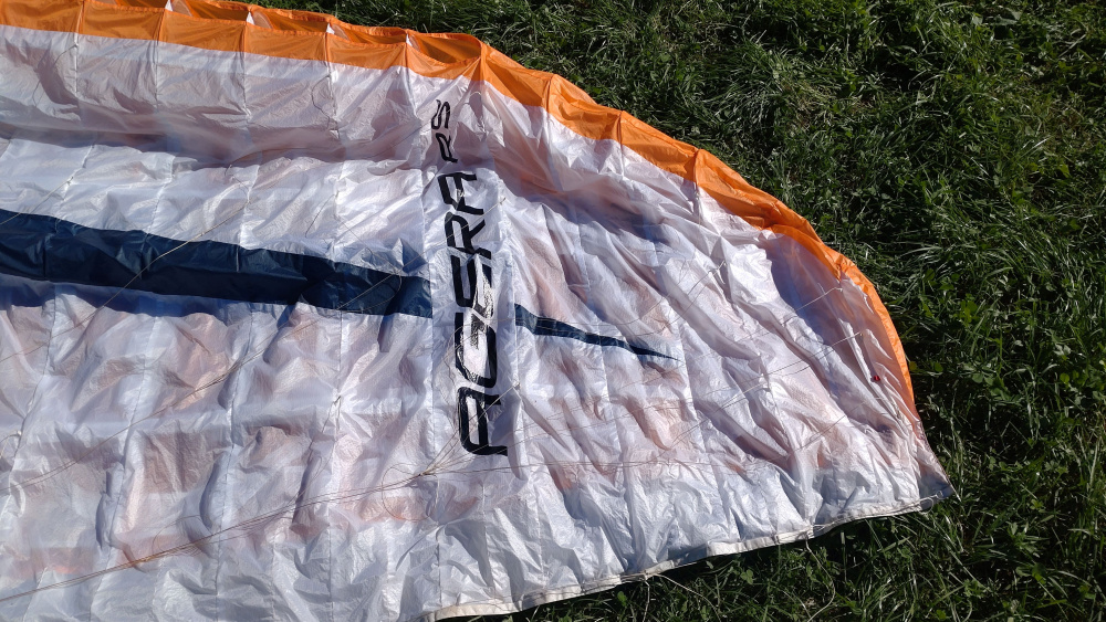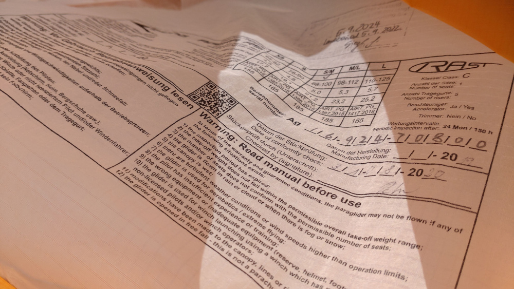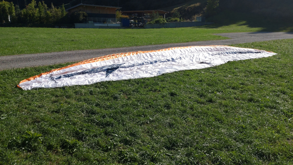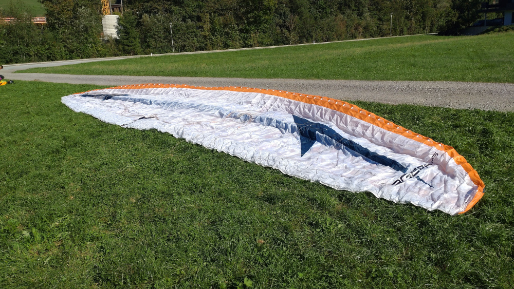 Ich bin den Schirm etwa 110-120 h geflogen. Der Schirm kommt in einem Zellpacksack und mit der Org. Betriebsanleitung.