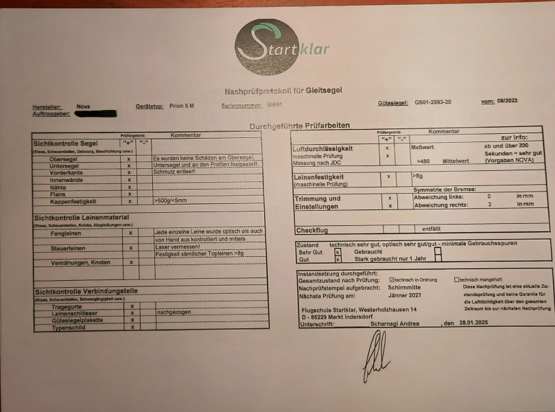 Bitte denkt daran! Luftsportgeräte müssen beim Betrieb in Deutschland mustergeprüft und stückgeprüft sei. Die Stückprüfung muss durch eine Kennzeichnung auf dem Gerät ersichtlich sein. Genaue Angaben zu dieser Kennzeichnung findet Ihr hier. |