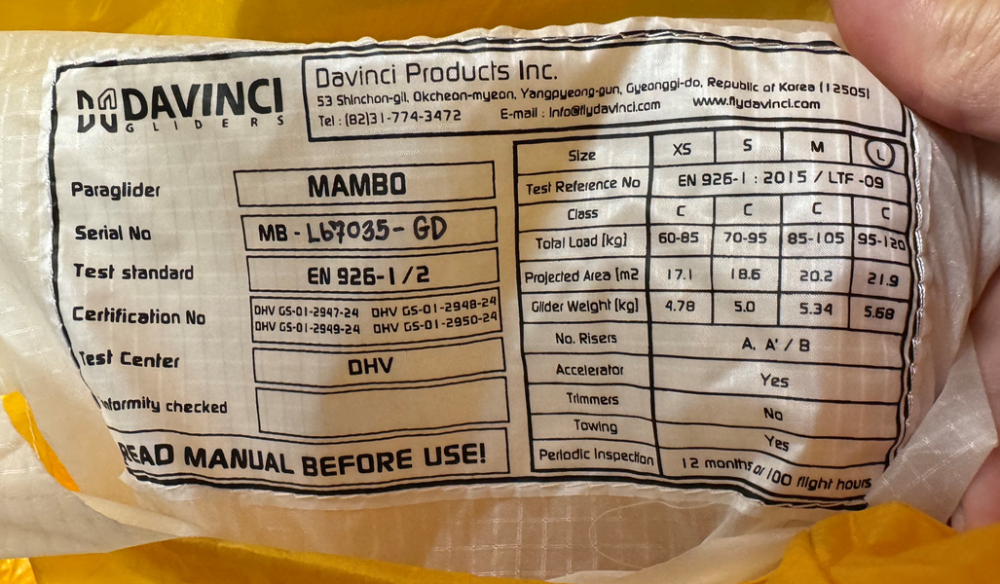 Musterprüfnummer DHV GS-01-2950-24