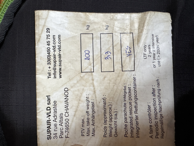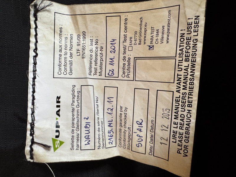 SUP Air Walibi 2 Pilotengurtzeug - von 12/2015 mit Spreize und Karabiner.Telefon: +49 176/61554588