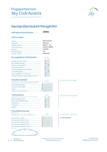 Bitte denkt daran! Luftsportgeräte müssen beim Betrieb in Deutschland mustergeprüft und stückgeprüft sei. Die Stückprüfung muss durch eine Kennzeichnung auf dem Gerät ersichtlich sein. Genaue Angaben zu dieser Kennzeichnung findet Ihr hier. |