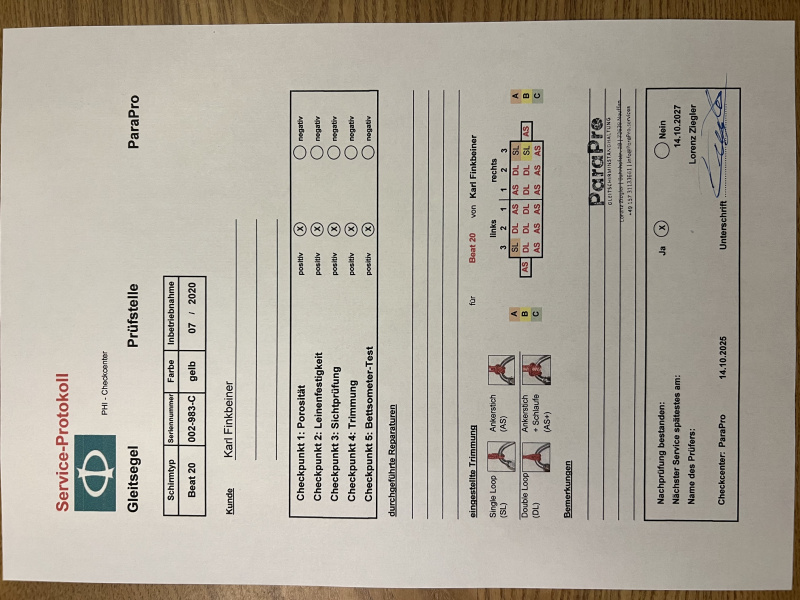 Verkaufe Phi Beat 20 (Mid-B bis 85kg) mit R07-Tragegurten (Handles mit BC-Bridge) von 2020 und Check bis 10/2027. Seit dem Check & Trimm im Oktober nicht geflogen. Guter gebrauchter Zustand, Tuchwerte im Durchschnitt bei 219s JDC, min 57s. Genaueres gerne auf Anfrage. Fixpreis 1000€