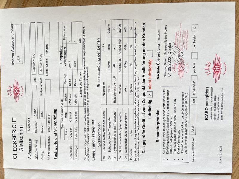 Bitte denkt daran! Luftsportgeräte müssen beim Betrieb in Deutschland mustergeprüft und stückgeprüft sei. Die Stückprüfung muss durch eine Kennzeichnung auf dem Gerät ersichtlich sein. Genaue Angaben zu dieser Kennzeichnung findet Ihr hier. |
