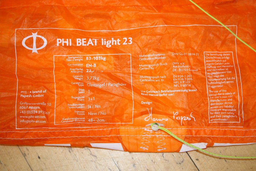 angeboten wir der beliebte PHI BEAT 23 , der sehr leichte EN-B Allrounder ist in neuwertigem Zustand , Die Tuchwerte > 1500 sec JDCTelefon: 0832638036