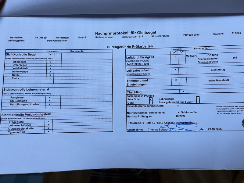 Bitte denkt daran! Luftsportgeräte müssen beim Betrieb in Deutschland mustergeprüft und stückgeprüft sei. Die Stückprüfung muss durch eine Kennzeichnung auf dem Gerät ersichtlich sein. Genaue Angaben zu dieser Kennzeichnung findet Ihr hier. |