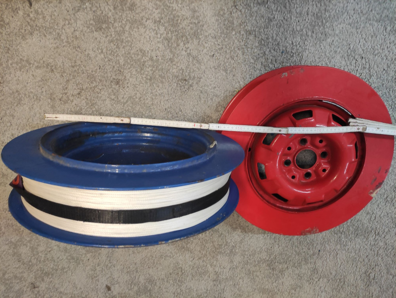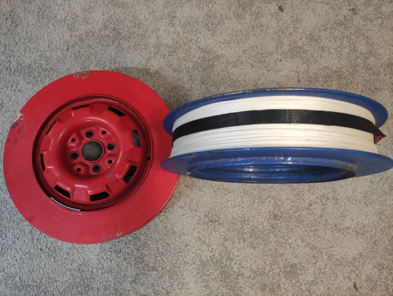 Biede: 2 Seiltrommeln aus Stahl ( je 24 Kg,Außdruchmesser 490 mm, Breite f. Seil 90mm auf Golffelge Außdruchmesser 370 mm 4er Lochkeisduchmesser 100 mm ) mit Windenschleppseil Dynema da 740 je 1040 m je 550 €Telefon: 03521 403500