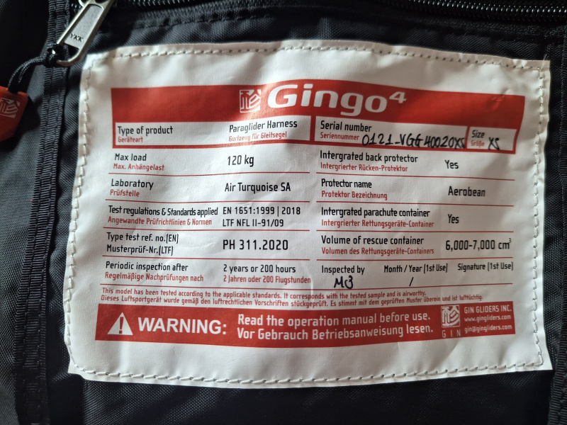 Ich verkaufe mein Sitzgurtzeug GIN Gingo 4 Größe XS