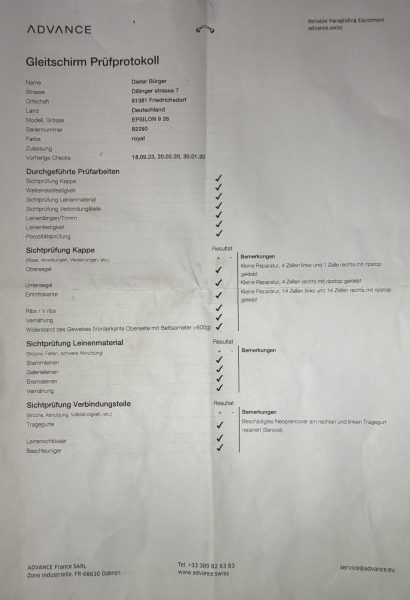 Ich verkaufe meinen Epsilon 9 26 in der Farbe Royal. Der Schirm ist BJ 2018, ich hatte ihn selbst erst letztes Jahr über den DHV-Gebrauchtmarkt gekauft. Leider hat der Vorbesitzer den Zustand nicht wahrheitsgemäß beschrieben, sodass neben einigen kleinen Rissen im Segel auch die Porosität nicht mehr die allerbeste ist. Dennoch hat der Schirm einen nagelneuen Check für 2 weitere Jahre bekommen (Checkprotokoll anbei), die Defekte im Segel wurde wie beschrieben professionell geklebt, die Neoprencover an den Tragegurten wurden erneuert und der Schirm frisch getrimmt. So ist der Schirm nun also fit für neue Abenteuer, ich habe mich allerdings wirklich über den Vorbesitzer und die Täuschung geärgert, was ich nicht die ganze Zeit beim Fliegen im Hinterkopf haben möchte, sodass ich mich entschieden habe, den Schirm zu verkaufen und mir selbst einen anderen zu kaufen. Inbegriffen ist neben dem Schirm das originale Advance Compression Bag. Preis VHB, Zustand ist dabei berücksichtigt!