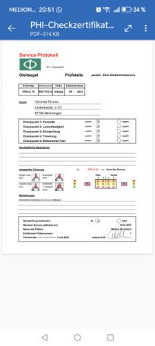Prüfnorm: LTF NFL II-91/09 und NfL 2-60-14 , EN 926-2:2014, EN 926-1:2006