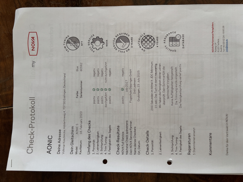Der Schirm wurde sorgfältig geflogen, befindet sich in einem sehr gepflegten Zustand und ist technisch einwandfrei.