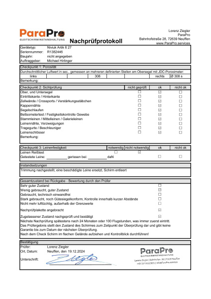 Erstflug Sommer 2022 , letzter Check 12/2024 Prüfprotokoll vorhanden.
