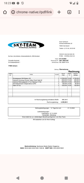 Bitte denkt daran! Luftsportgeräte müssen beim Betrieb in Deutschland mustergeprüft und stückgeprüft sei. Die Stückprüfung muss durch eine Kennzeichnung auf dem Gerät ersichtlich sein. Genaue Angaben zu dieser Kennzeichnung findet Ihr hier. |