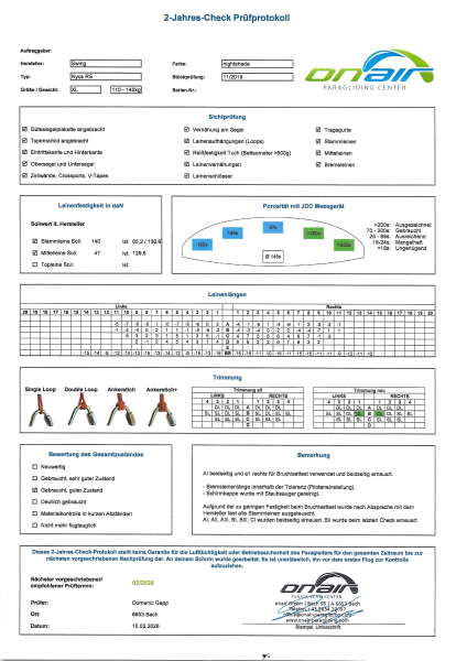 Verkauft wird ein gebrauchter Gleitschirm NYOS RS XL Bj. 2019 der CEN Klasse BTelefon: +491703274064