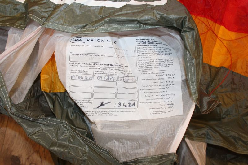 Prion 4 XS in einem Topzustand abzugeben. Der Schirm wurde kaum geflogen. Ein Check kann gegen Bezahlung ge-macht werden. Versand ist möglich.