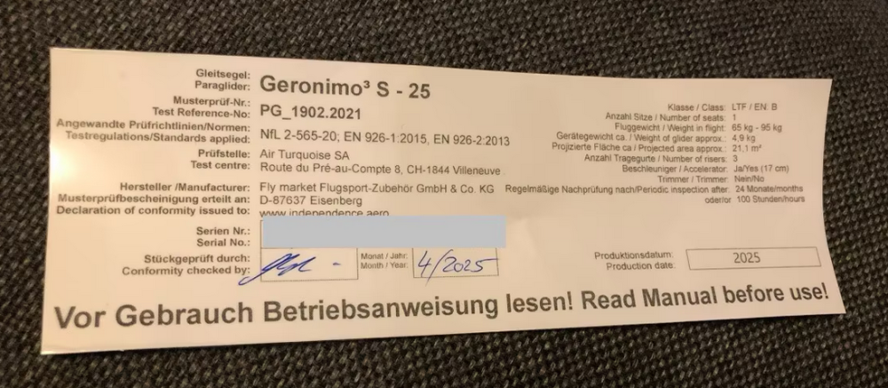 Bitte denkt daran! Luftsportgeräte müssen beim Betrieb in Deutschland mustergeprüft und stückgeprüft sei. Die Stückprüfung muss durch eine Kennzeichnung auf dem Gerät ersichtlich sein. Genaue Angaben zu dieser Kennzeichnung findet Ihr hier. |
