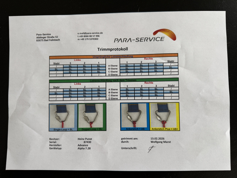 Verkauft wird ein Advance Alpha 7 in der Größe 28. Er hat Motortragegurte und kann daher am Berg und mit Motor geflogen werden. Trimmcheck (KW 8/2026) und kann 2 Jahre wieder unbesorgt fliegen.