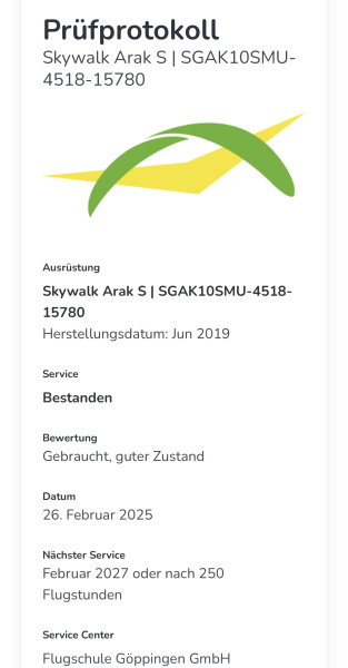 Zu verkaufen ist ein Skywalk Arak, Baujahr 2019, Größe S, aus Zweitbesitz.