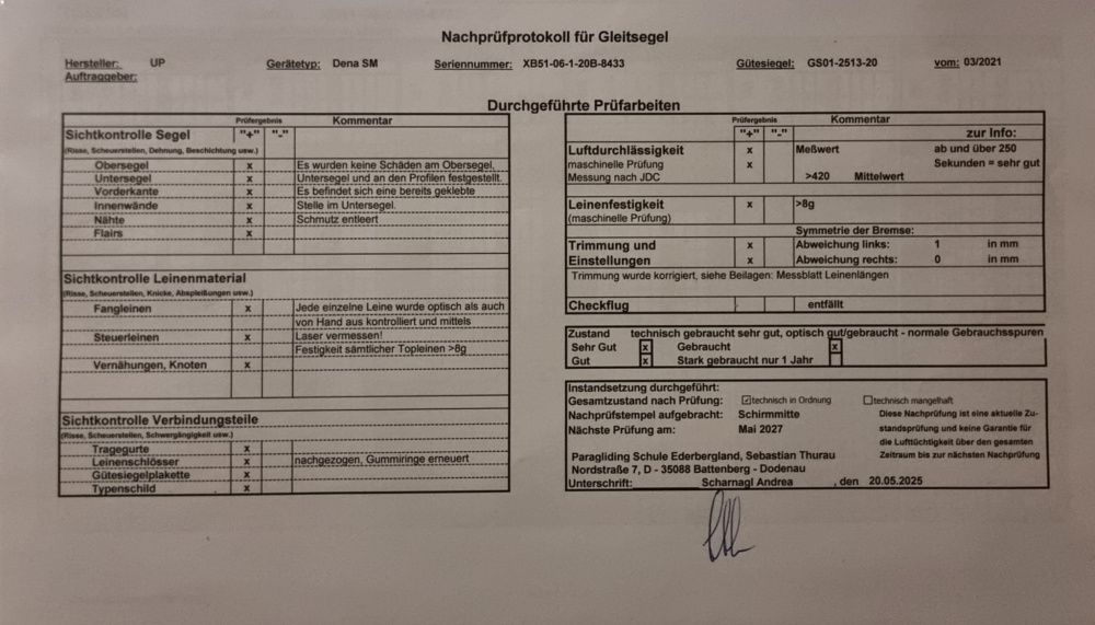 Hallo Flieger, biete hier den UP Dena meiner Freundin (Wellnessflieger) mit ca. 40 Std Airtime, der Schirm ist in einem sehr guten Gebrauchtzustand siehe Protokoll. Leider hat er eine kleine Klebestelle siehe Bilder. Der Schirm wird wegen wechsel auf eine höhere Schirmklasse abgegeben. Lg und happy LandingsTelefon: 01705724929