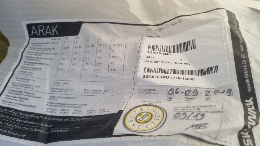 Verkaufe meinen ARAK S von Skywalk in gutem Zustand. Bj. 9/2019. Keine Flicken, keine Dünen/Inseln.