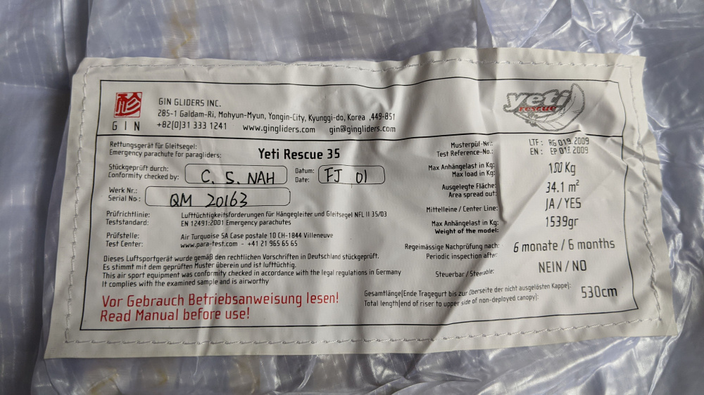 Eingebauter Retter von GIN: Yeti Rescue 35 100kg, 250 € (Rechn+Foto), unbenutzt, einmal gepackt, sollte für 2026 neu gepackt werden, Standort: 69121 Heidelberg (Abholung bevorzugt, Versand möglich).