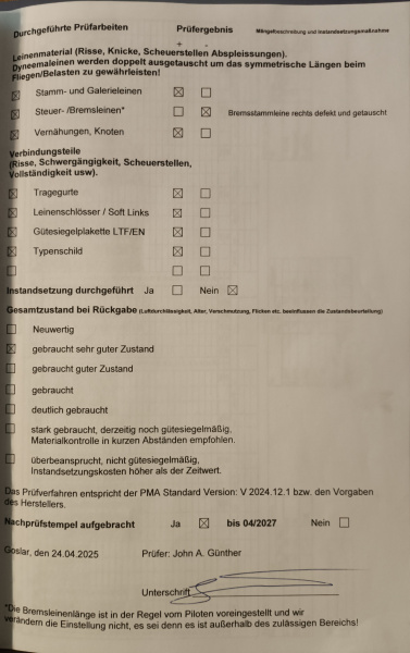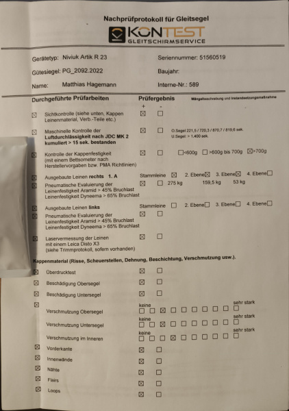 Bitte denkt daran! Luftsportgeräte müssen beim Betrieb in Deutschland mustergeprüft und stückgeprüft sei. Die Stückprüfung muss durch eine Kennzeichnung auf dem Gerät ersichtlich sein. Genaue Angaben zu dieser Kennzeichnung findet Ihr hier. |