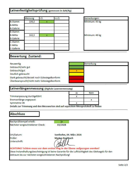 Bitte denkt daran! Luftsportgeräte müssen beim Betrieb in Deutschland mustergeprüft und stückgeprüft sei. Die Stückprüfung muss durch eine Kennzeichnung auf dem Gerät ersichtlich sein. Genaue Angaben zu dieser Kennzeichnung findet Ihr hier. |