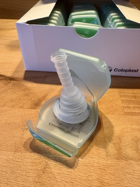Ich verkaufe Uris von Conveen Optima selbsthaftend 8 cm lang Durchmesser 30 mm im Paket 30 Stück für 45 € zuzüglich Versand.