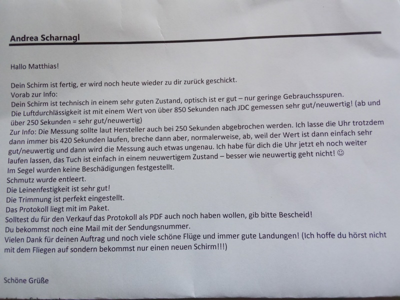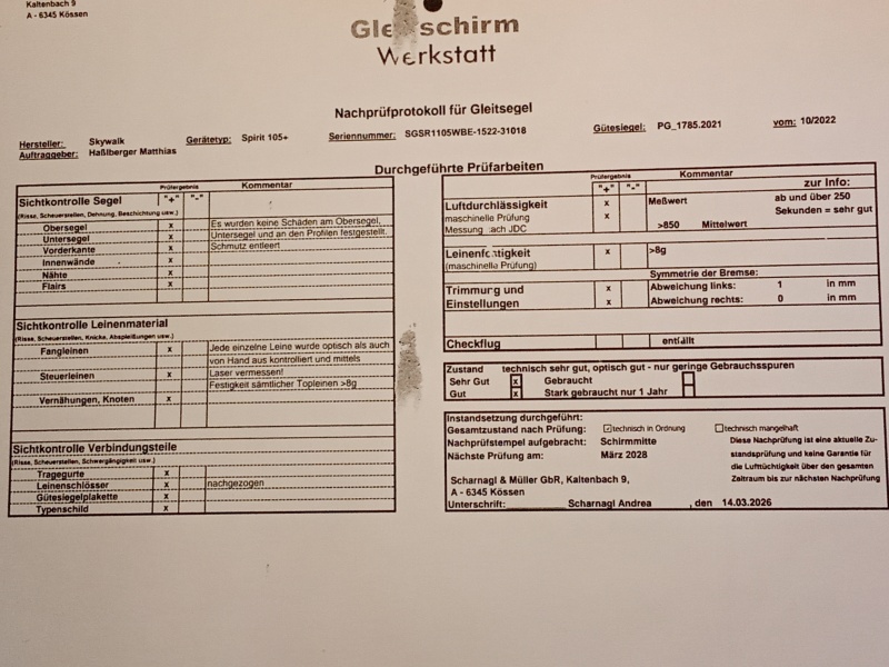 Bin Erstbesitzer, war Zweitschirm, seit Dezember wegen Schulter Verletzung nicht mehr geflogen.