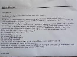 Luftdurchlässigkeitsmessung laut JDC bei 850 s abgebrochen. (ab 250s = Neuwertig)